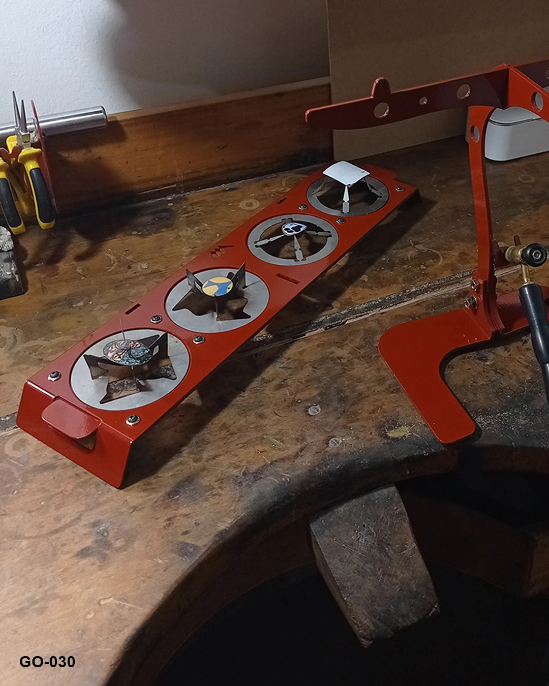 Estación de esmaltado, ideal para trabajos en serie. Su diseño permite que las piezas se enfríen en el soporte sin necesidad de retirarlas y así podrá continuar esmaltando con otra estación de esmaltado.